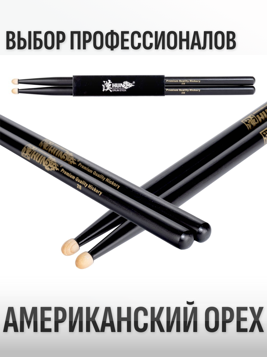 Барабанные палочки, орех гикори, чёрн HUN B&G 2B
