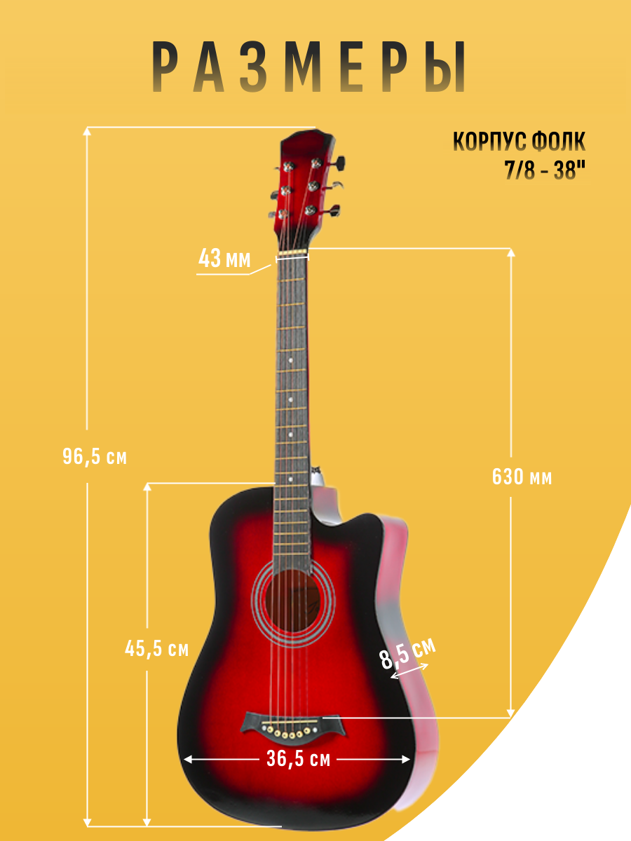 - Гитара изготовлена из комбинированной древесины высшего качества, что обеспечивает инструменту звучание инструмента высокого уровня, а благодаря небольшому корпусу, акустическую гитару Belucci 38 удобно брать с собой в дорогу