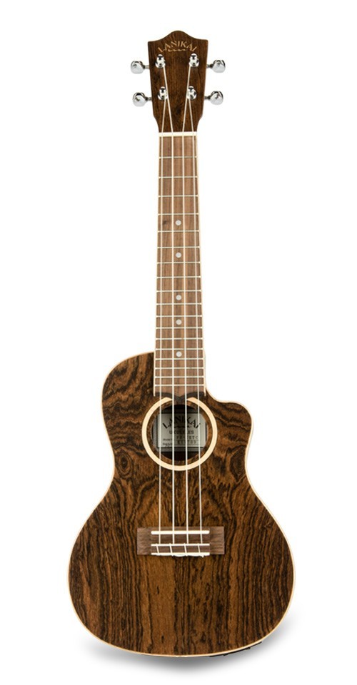 Серия укулеле Figured Bocote Thin Body (FB) выполнена из бокоте. Бокоте - это очень красивая древесина с потрясающим узорчатым рисунком из темных полос. Она наделяет инструмент полноценным сбалансированным звучанием. Тонкий корпус - толщина корпуса в самой широкой области составляет 42 мм, в самой узкой области - 34мм. Удобный широкий верхний порожек, отборная древесина с узорчатой структурой, инкрустация по дереву, активный звукосниматель Shadow SH-3V, матовая поверхность. Хромированные колки открытого типа позволяют произвести точную настройку и при этом не утяжеляют головку грифа, обеспечивая тем самым дополнительный комфорт при исполнении. Для отличного сустейна и качества звучания на всех укулеле серии Figured Bocote (FB) установлены инновационные порожки NuBone XB*. Укулеле серии Figured Bocote (FB) укомплектованы надежными и качественными струнами D Addario EJ88 и фирменным мягким чехлом с утеплением 10 мм. Технические характеристики:. Размер - концерт. Толщина корпуса в самой широкой области составляет 42 мм, в самой узкой области - 34мм. Верхняя дека - бокоте. Нижняя дека и обечайка - бокоте. С вырезом (cutaway). Активный звукосниматель Shadow SH-3V. Удобные широкие гриф и порожек. Ширина порожка - 37,4 мм. Порожки NuBone XB*. Струнодержатель no-tie с 8-ю отверстиями, позволяющий легко установить новые струны. Гриф и подставка - древесина грецкого ореха. Окантовка грифа - натуральный клен/черные точки. Инкрустация из клена на резонаторном отверстии. Безопасное и удобное хромированное крепление для ремня. Струнодержатель no-tie с 8-ю отверстиями, позволяющий легко установить новые струны. Хромированные колки открытого типа. Надежные и качественные струны D Addario EJ88. В комплект входит мягкий чехолс уиеплением 10 мм. *Порожки NuBone XB (Extended Bass Response - усиленный басовый отклик) - это инновационная разработка LANIKAI и Graph Tech. Они были сконструированы специально для того, чтобы усилить громкость и сделать более глубокими нижние обертоны. NuBone XB подойдут для гитар с небольшим корпусом, гитар и укулеле из ламината - любых инструментов, которым вы хотели бы добавить басов.